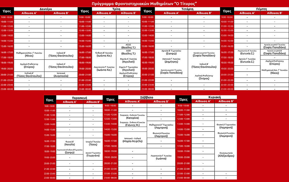 Όσοι/ες επιθυμούν να ξεκινήσουν μαθήματα γυμνασίου – λυκείου, επικοινωνούν με τον κατάλληλο καθηγητή.
